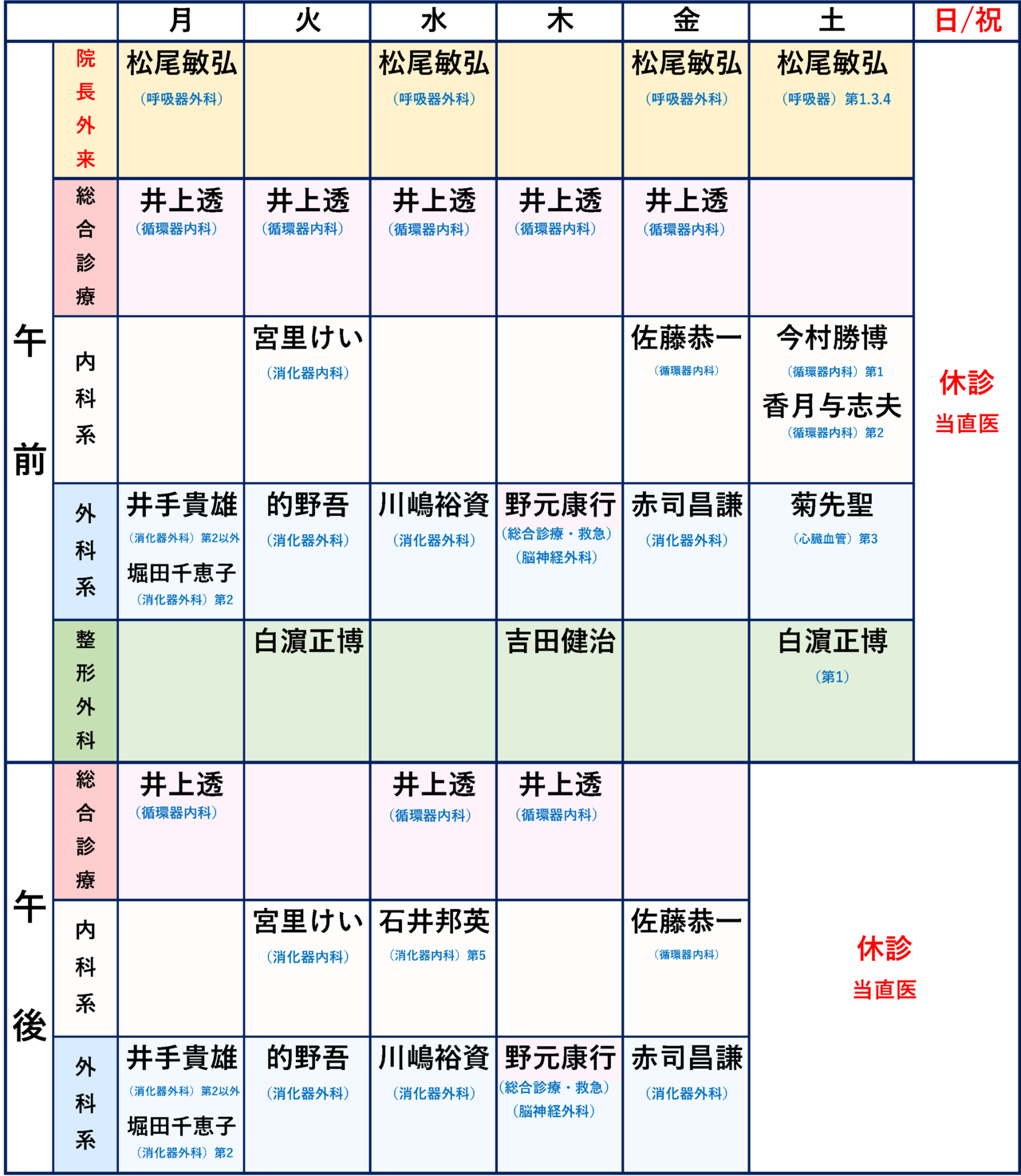 循環器内科・総合診療 | 井上 透 | 月曜日~金曜日(火・金は午前のみ) |