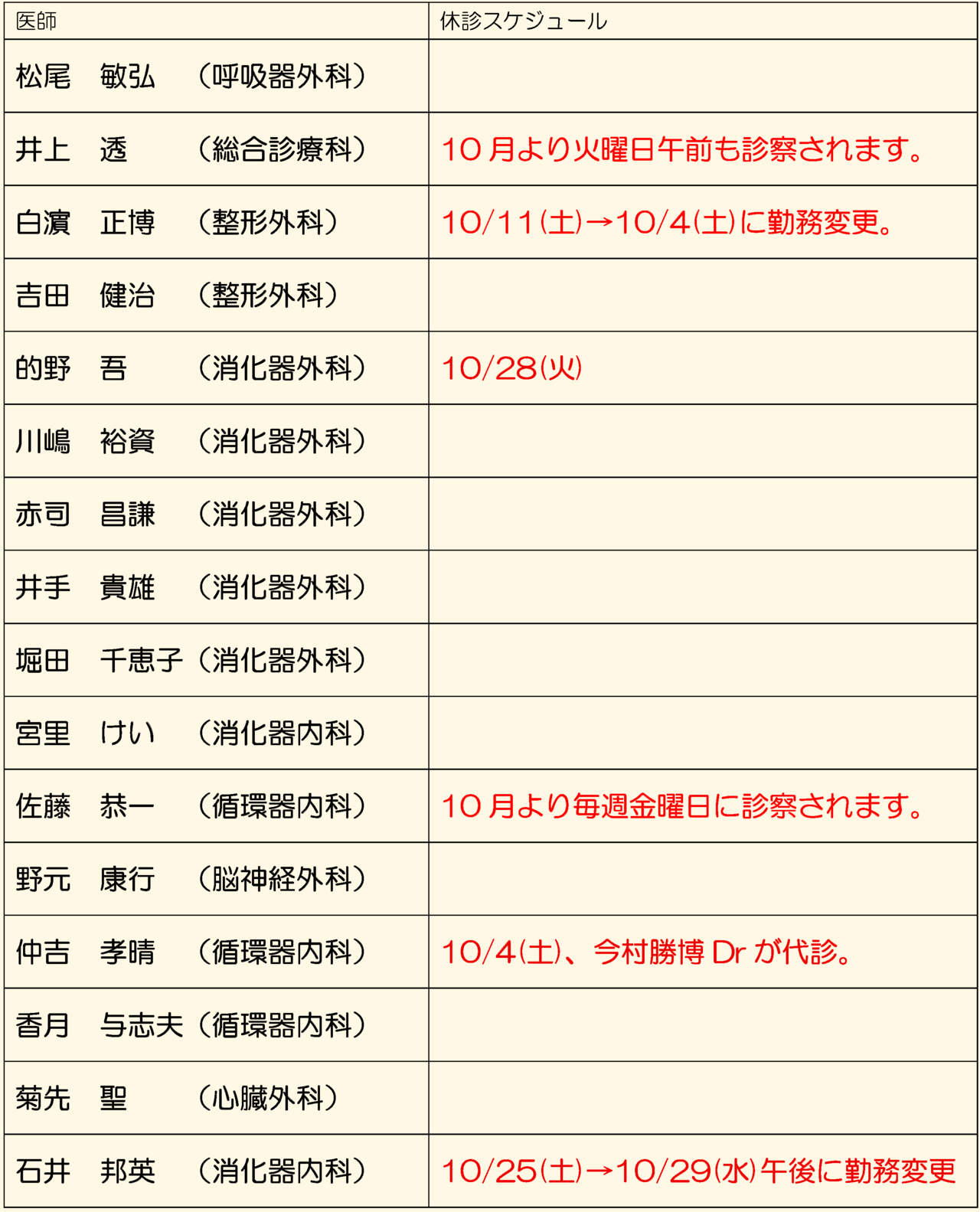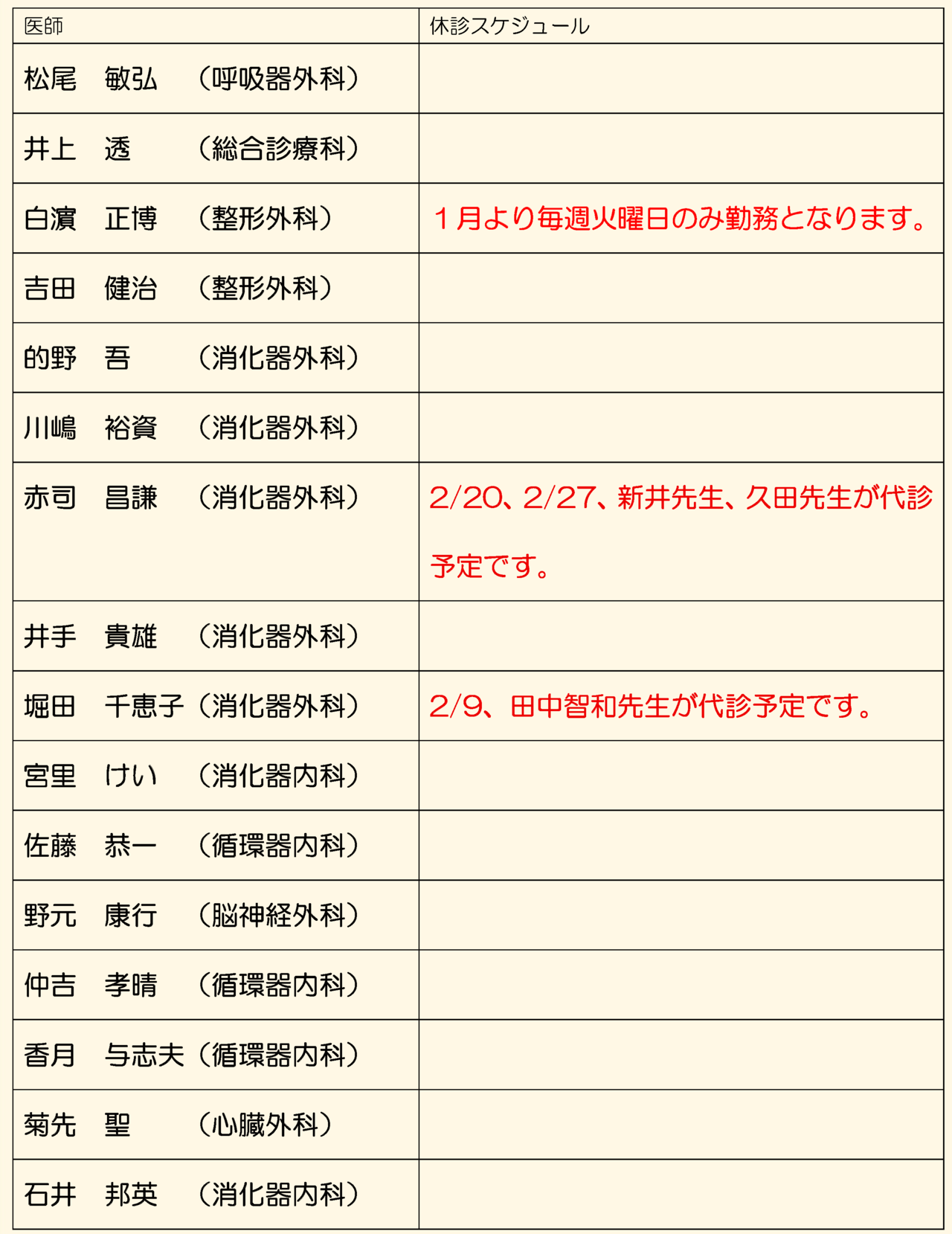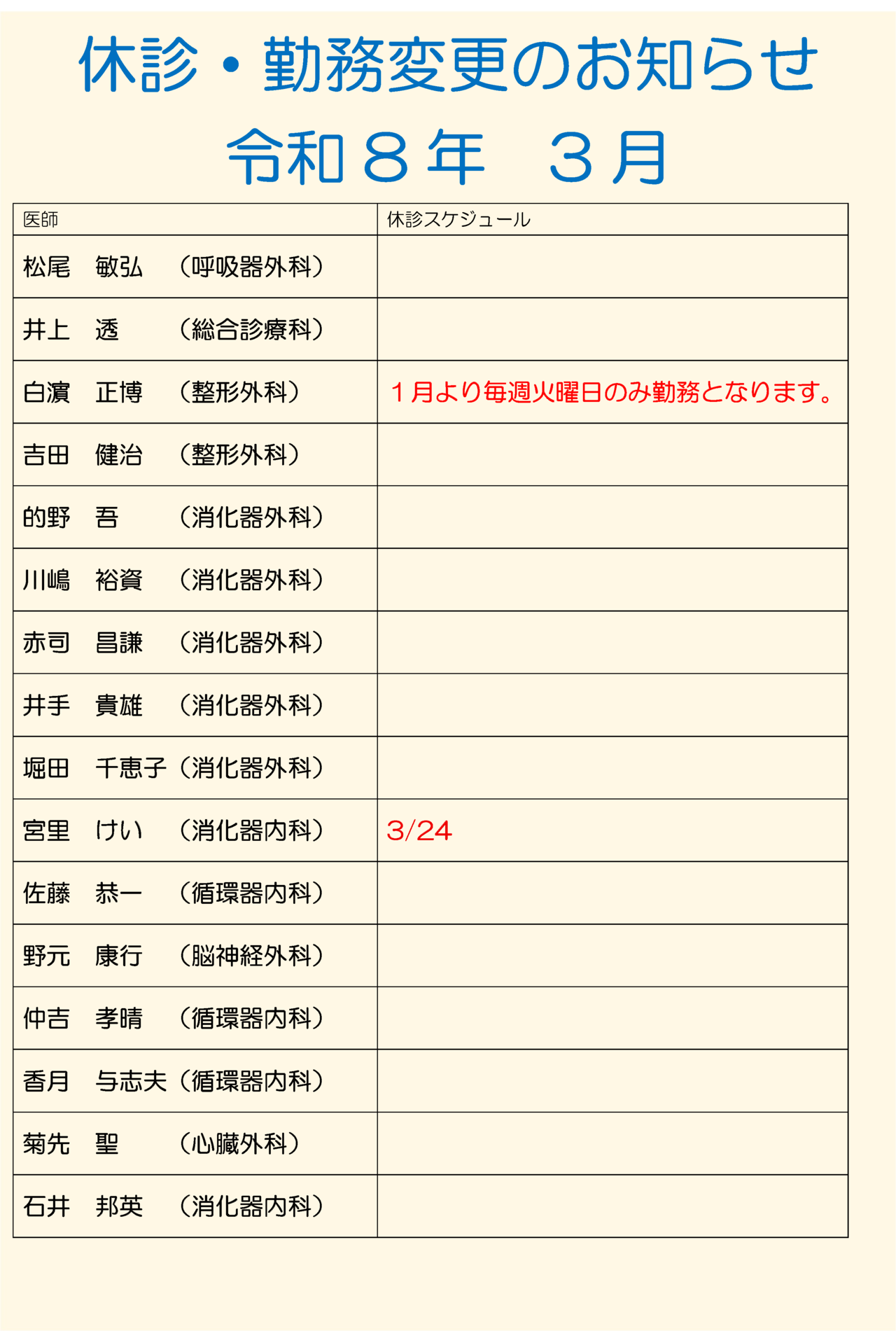 令和7年7月1日より、土曜日の午後休診となり、当直医体制となります。
